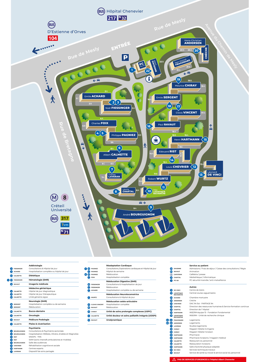 • Les Consultations  : Situées au Pavillon Achard-Fiessinger, ces consultations spécialisées constituent l'étape initiale d'évaluation. La démarche de prise de rendez-vous doit être personnelle et individuelle afin d'élaborer une proposition d'accompagnement ou d'orientation adaptée.