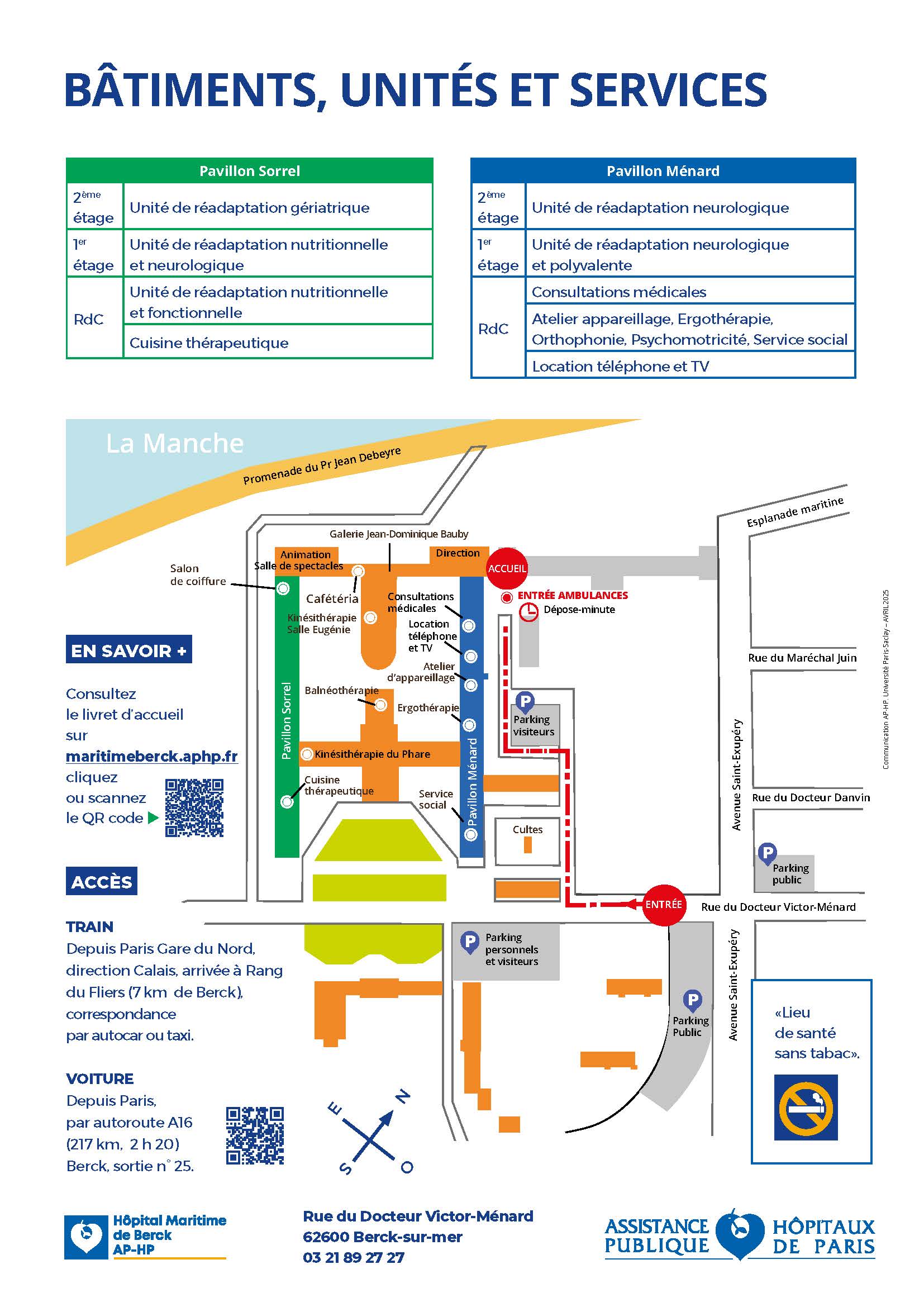 Pour faciliter la lecture des RPA de l’hôpital Maritime de Berck AP-HP, seules les synthèses des caractéristiques d’accessibilité de chaque bâtiment sont consultables sur le site Internet de l’hôpital. Les consulter.