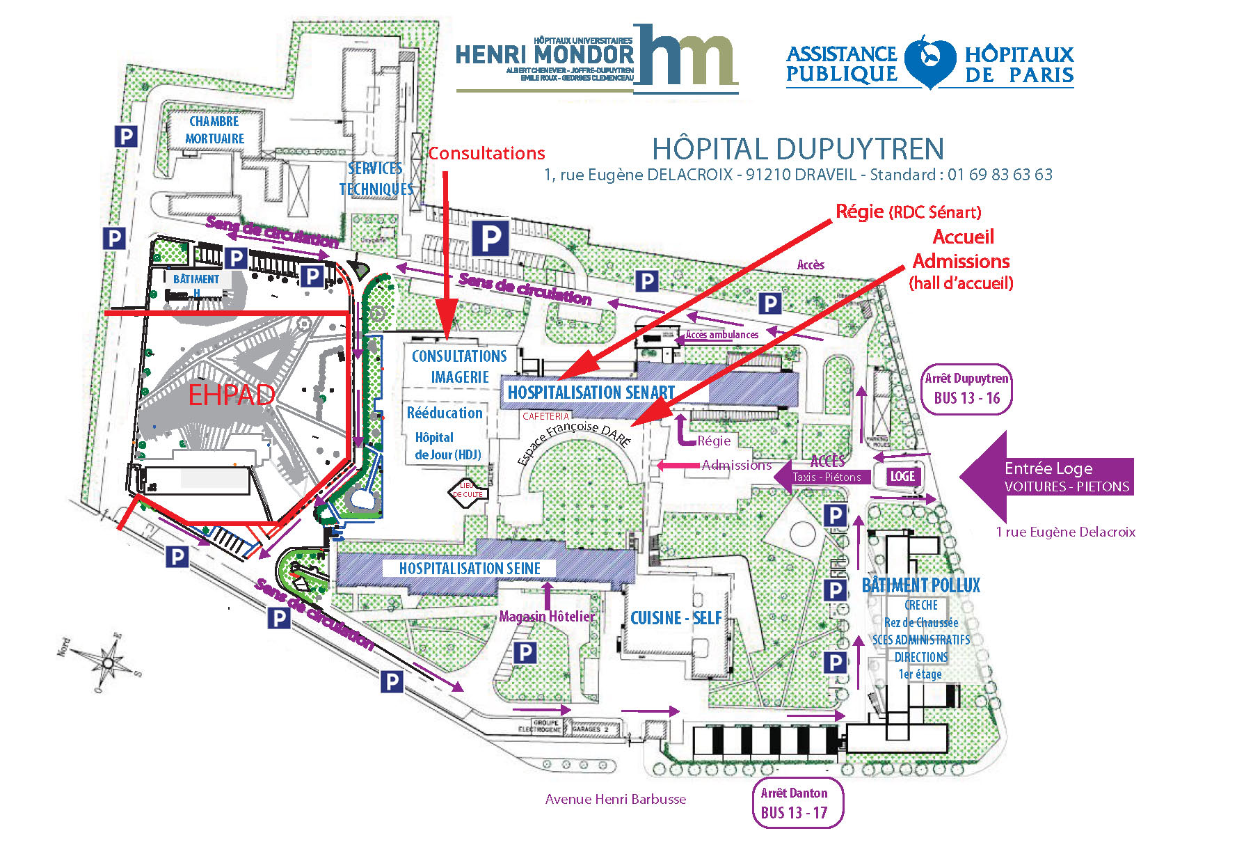 Ligne Intervals (dessert l’hôpital de Villeneuve St Georges, Vigneux, Montgeron et Draveil) avec le RER D, descendre à Montgeron et prendre le bus jusqu’à l’arrêt Danton
