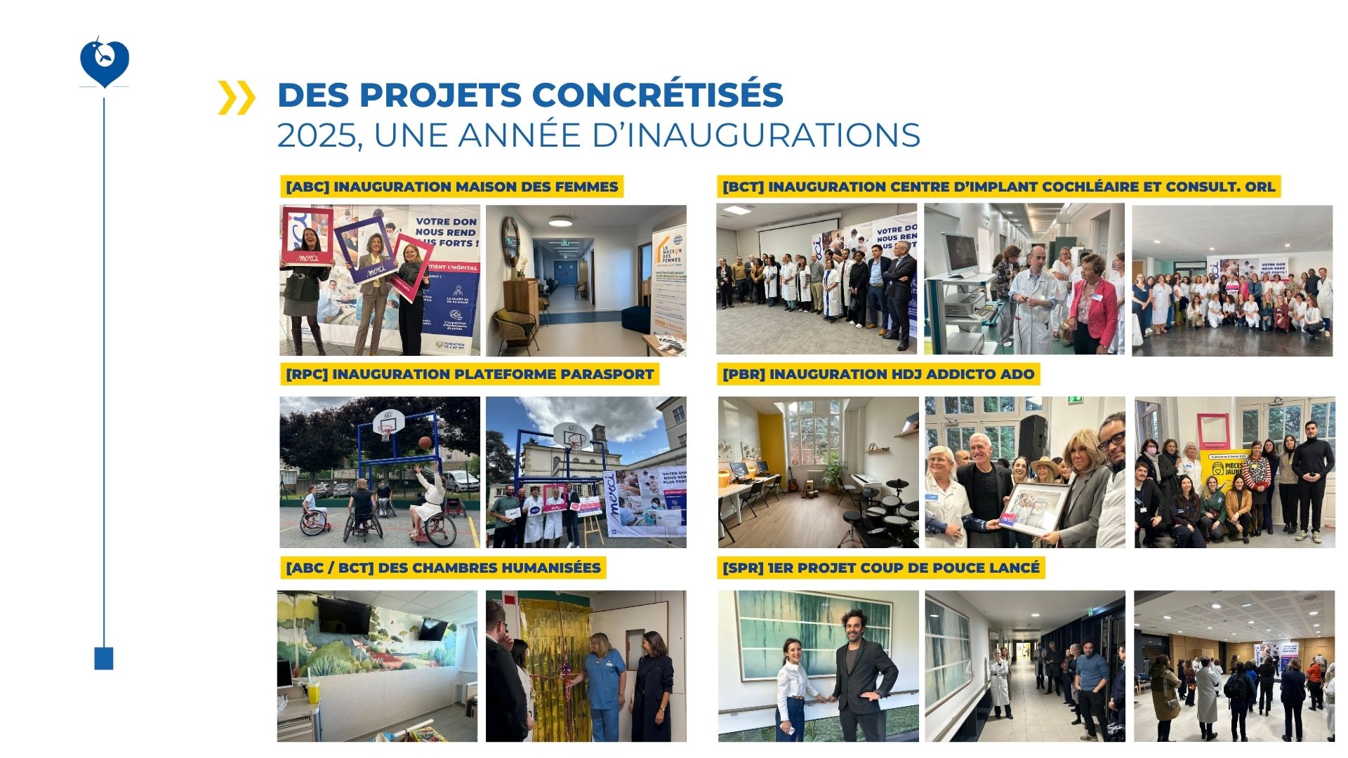 Cette organisation permet de concentrer les dons sur des projets identifiés, d’éviter leur dispersion et de garantir un impact réel et mesurable. Chaque contribution participe ainsi directement à l’amélioration des conditions de prise en charge et au développement de projets innovants au sein de l’hôpital.